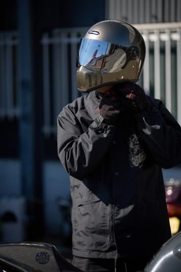 シールドは3段階調整での開閉、オープン時にはしっかり静止しクローズ状態では高い合成で帽体と同化し走行時の突風を防いでくれます。