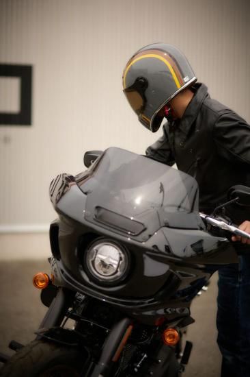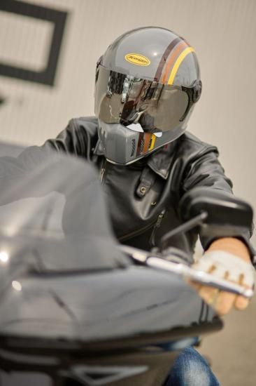 スマートにシェイプされたノーズが特徴のヘルメット。車両をより攻撃的に演出してくれます。