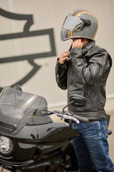 シールドは3段階調整での開閉、オープン時にはしっかり静止しクローズ状態では高い合成で帽体と同化し走行時の突風を防いでくれます。
