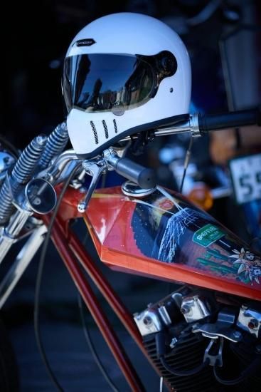 スマートにシェイプされたノーズが特徴のヘルメット。車両をより攻撃的に演出してくれます。