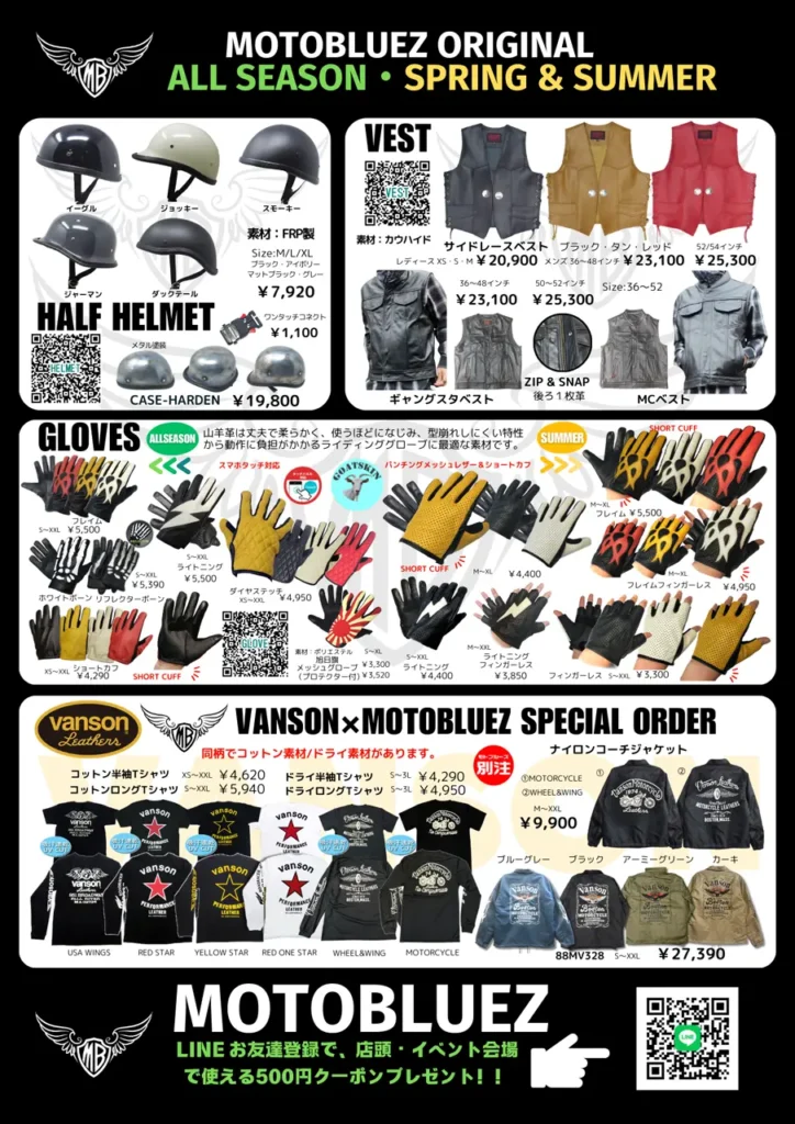 ・Motobluez公式ウェブショップで使える、全品5%OFFクーポンコード発行