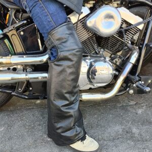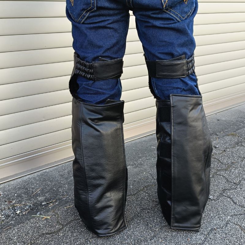 防寒性・安全性を兼ね備えた、真冬対応の極暖裏ボアレッグチャップスです。