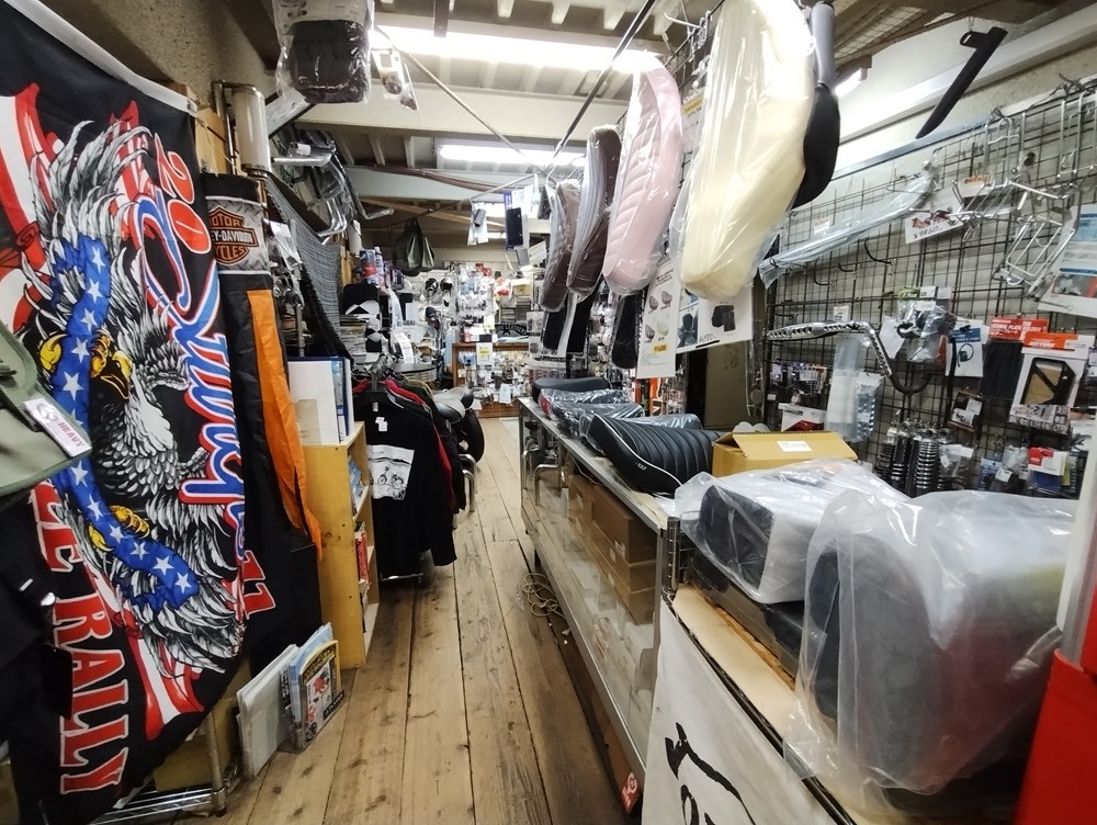 ハーレー・国産アメリカン・カブ等、中古車常時20台展示しています。