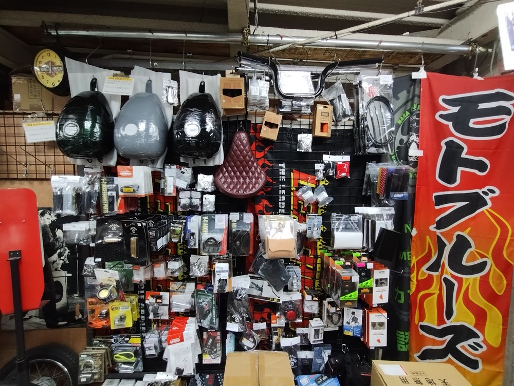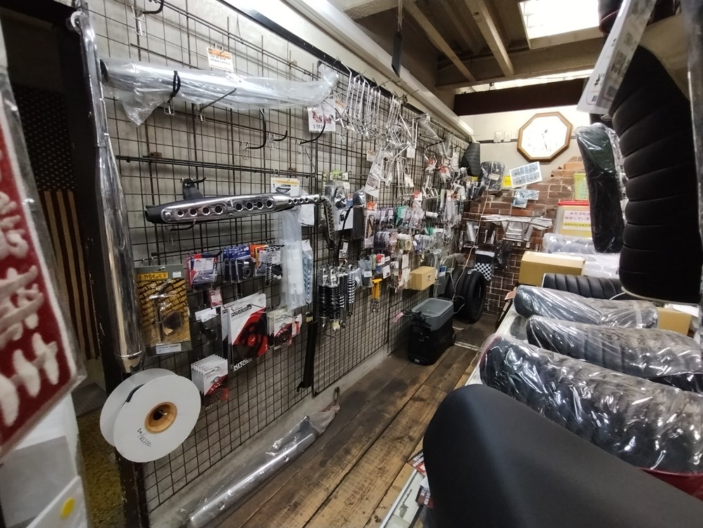 ミラー・ウインカー・インナーサイレンサーなど、パーツも展示しています。